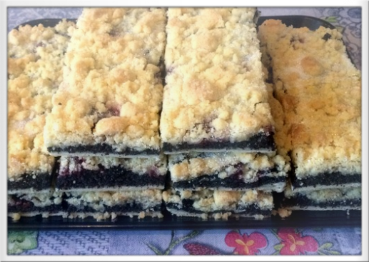Saftige Mohnfüllung mit Kirschen auf einem weichen Vanilleteig